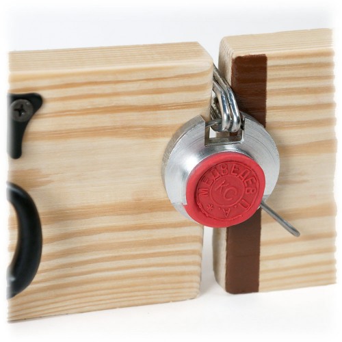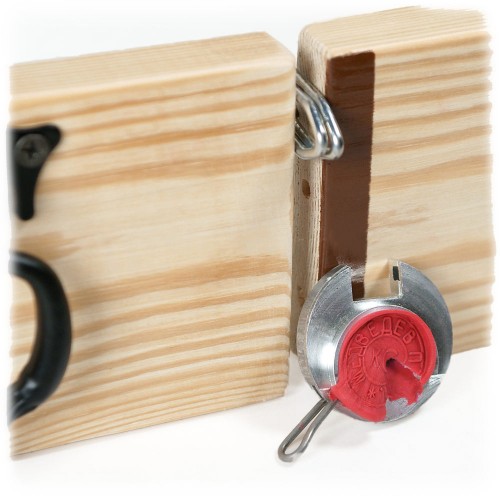 Опечатывающее навесное устройство второго типа служит для обеспечения надежного контроля доступа к металлическим шкафам различного назначения, сейфам и прочим объектам, конструкция которых предусматривает наличие особых пломбировочных петель, предназначенных для навесных устройств. Механизм устройства представляет собой сочетание круглого элемента под печать, изготовленного из алюминия, и передвижного запорного флажка из стали. Используется в тандеме с латунной печатью и мастикой для формирования оттиска, повреждение которого указывает на попытку несанкционированного доступа.